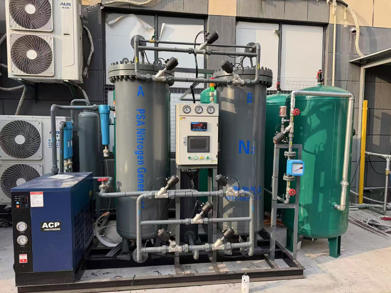 制氮機(jī)是與制氮機(jī)都是根據(jù)變壓吸附原理,采用高品質(zhì)的碳分子篩作為吸附劑,在一定的壓力下,從空氣中制取氮?dú)?。?jīng)過純化干燥的壓縮空氣,在吸附器中進(jìn)行加壓吸附、減壓脫附。由于空氣動(dòng)力學(xué)效應(yīng),氧在碳分子篩微孔中擴(kuò)散速率遠(yuǎn)大于氮,氧被碳分子篩優(yōu)先吸附,氮在氣相中被富集起來,形成成品氮?dú)?。然后?jīng)減壓至常壓,吸附劑脫附所吸附的氧氣等雜質(zhì),實(shí)現(xiàn)再生。